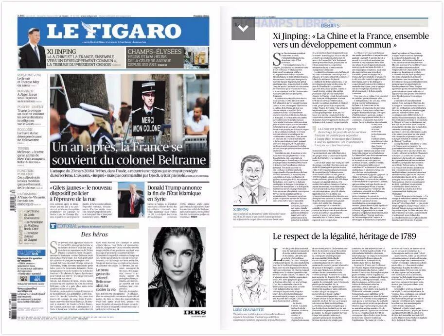 3月23日,在对法兰西共和国进行国事访问前夕,国家主席习近平在法国《费加罗报》发表题为《在共同发展的道路上继续并肩前行》的署名文章,文章中三处提及中法核能合作: