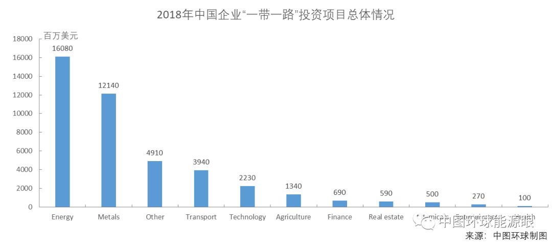 从投资金额看,2018年,中国企业在“一带一路”沿线国家投资的大型项目(金额在1亿美元以上)主要集中在能源和冶金行业,分别占38%和28%。