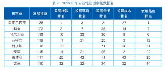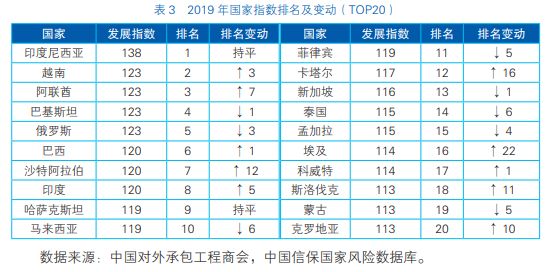 ▲上表分别为2019年东南亚国家指数排名和国家指数排名及变动情况。(图片来源:《“一带一路”国家基础设施发展指数报告(2019)》)