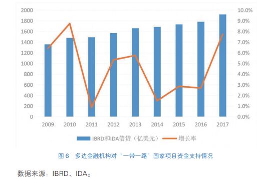 ▲多边金融机构对“一带一路”国家项目资金支持情况。(图片来源:《“一带一路”国家基础设施发展指数报告(2019)》)