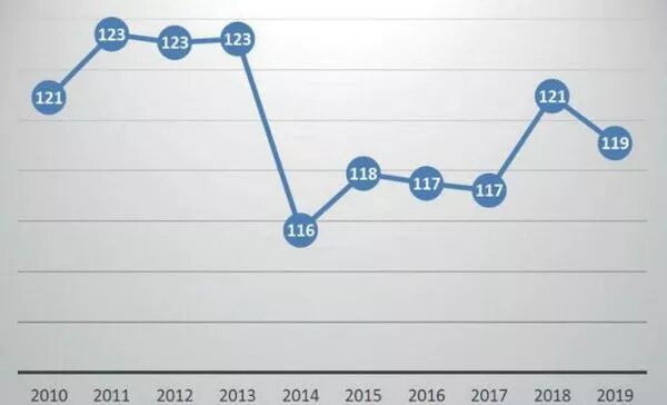 ▲近十年“一带一路”国家基建发展指数变化。(图片来源:中国商务新闻)