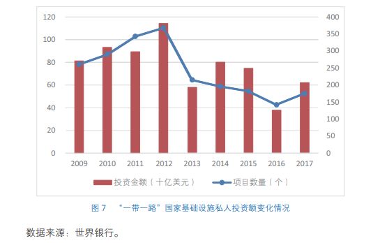▲“一带一路”国家基础设施私人投资额变化情况。(图片来源:《“一带一路”国家基础设施发展指数报告(2019)》)