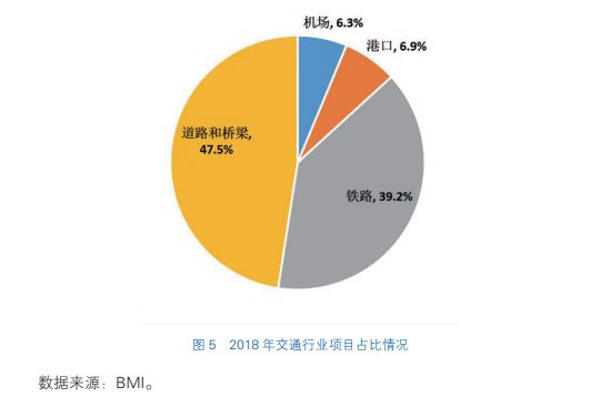 ▲2018年交通行业占比情况。(图片来源:《“一带一路”国家基础设施发展指数报告(2019)》)