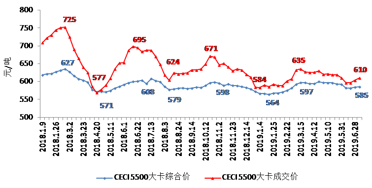 中国沿海电煤采购价格指数(CECI沿海指数)5500大卡周价格图