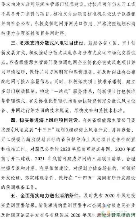 5、全面落实电力送出消纳条件。及时发布2020年风电投资监测预警结果。