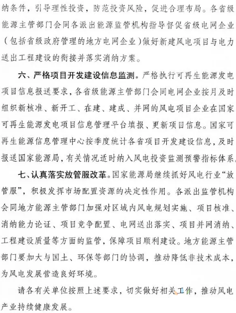 7、认真落实放管服改革。国家能源局继续抓好风电行业“放管服”,积极发挥市场配置资源的决定性作用。