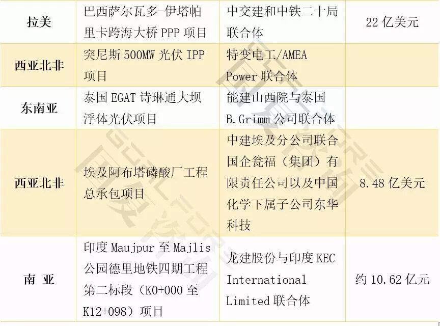 据国复咨询统计,2019年中国企业以联合体方式新签中标海外重点项目60个。其中: