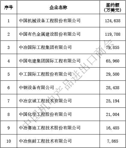 2.计入签约统计项目包含冶金矿山装备行业大型单机和成套装备出口以及工程总承包、工程设计及安装和土建等工程项目,不含中国企业对外以BOT等方式直接投资的项目及中国企业间签署的内部分包项目。
