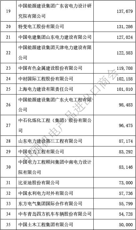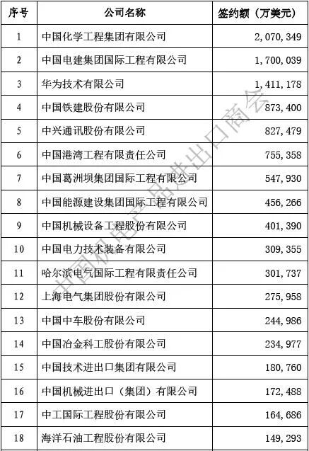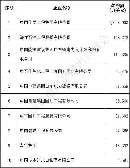 根据各重点企业报送的2019年海外项目签约情况,机电商会对以上大型成套设备工程项目以及石油化工、轨道交通、冶金矿山和水处理等重点行业企业签约额进行了排名(电力行业企业签约排名已发布),现予以发布。
