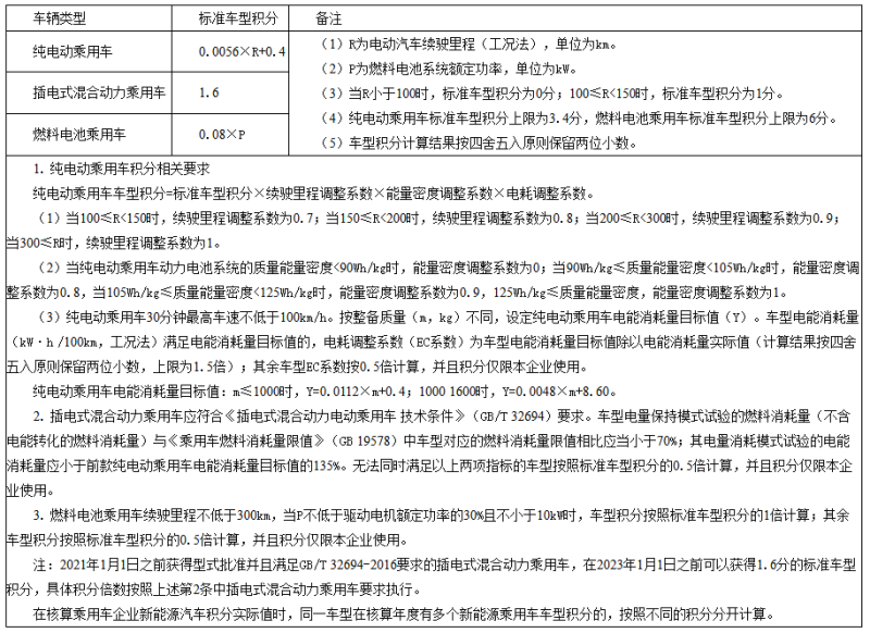 新能源乘用车车型积分计算方法