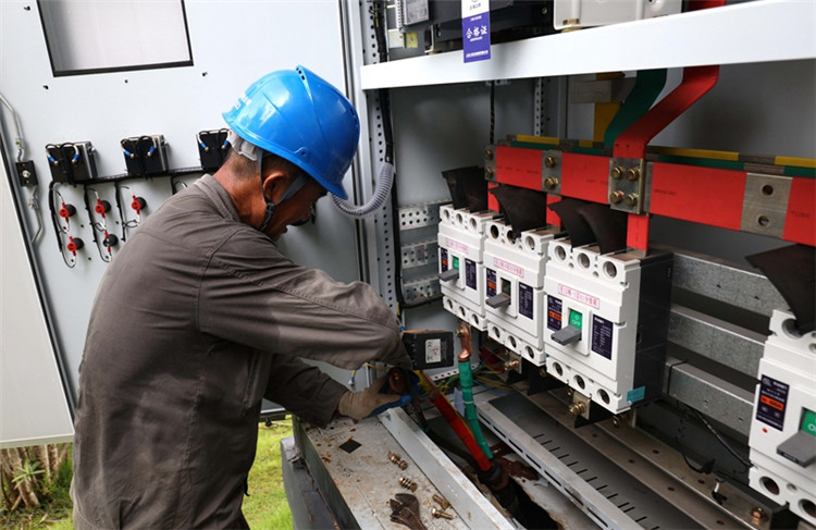 国网江西九江濂溪区供电公司员工在碧桂园九玺小区开展抢修复电工作。