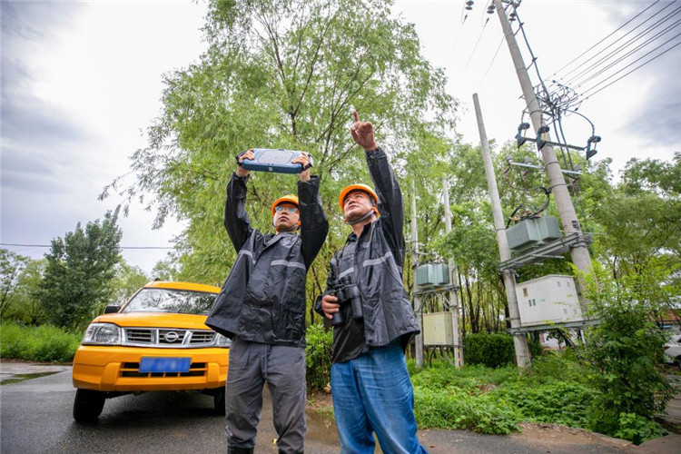 国网北京昌平供电公司员工在阳坊镇东贯市村巡检10千伏东贯市线。