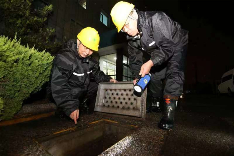 国网山东德州供电公司员工加强变电站内端子箱、积水池等防汛重点部位巡检。