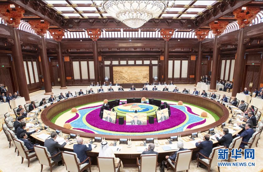 ▲4月27日,第二届“一带一路”国际合作高峰论坛在北京雁栖湖国际会议中心举行圆桌峰会,国家主席习近平主持会议并致开幕辞(图片来源:新华社)