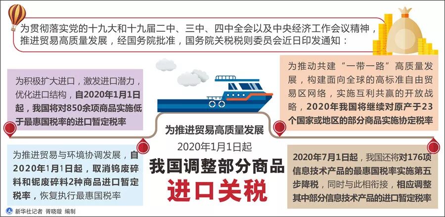 ❶ 2020年关税下调,表现了中国对集成电路、航空航天、汽车、通信、电子、生物等高新技术产业发展的支持。