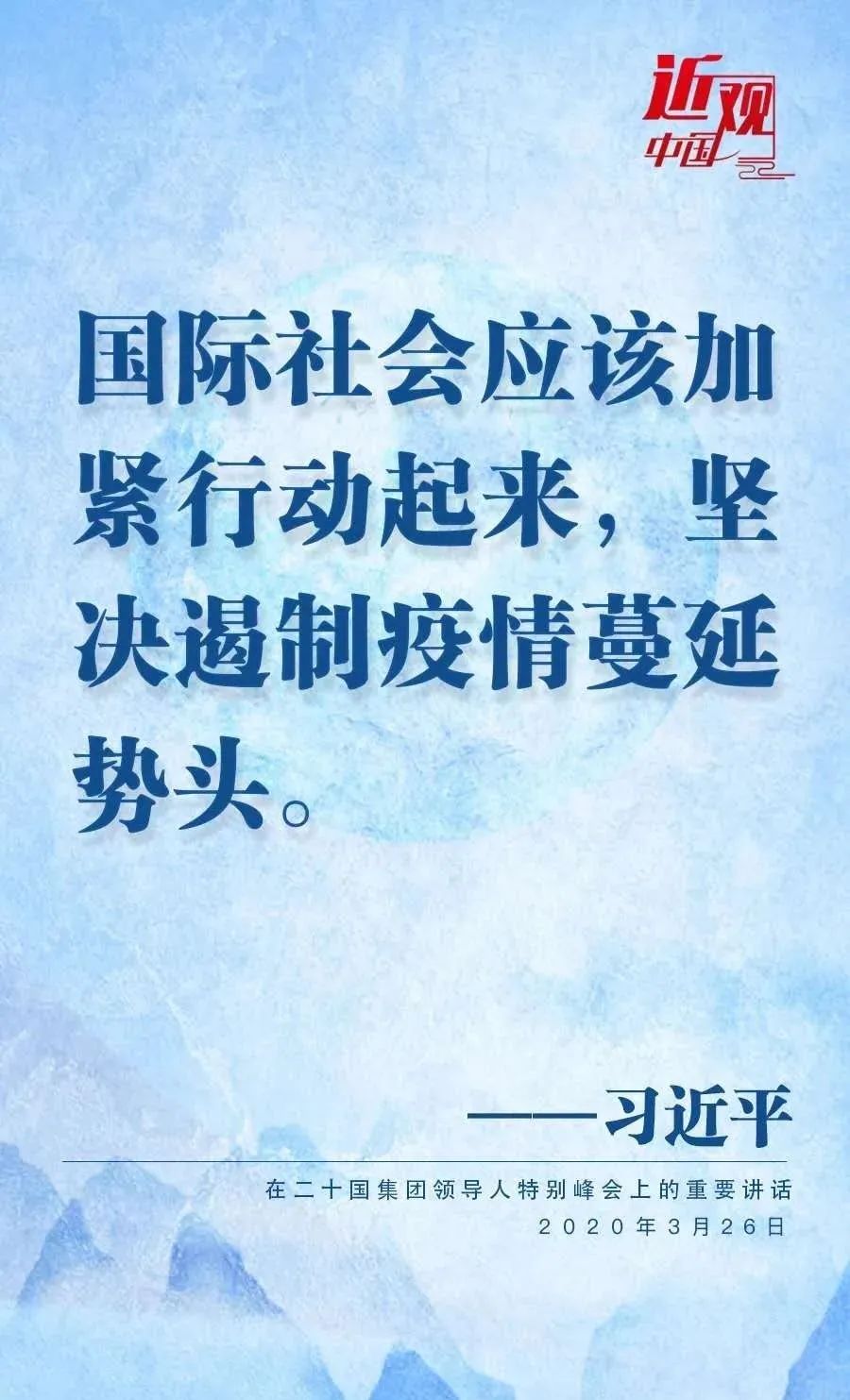 在与多个国家和国际组织领导人互动中,他呼吁携手拉起最严密的联防联控网络,先后十余次表示中国愿提供“力所能及”的帮助,从信息分享到病毒检测,从物资供给到疫情趋势预测,他一一部署,督促落实;从区域公共卫生应急联络到全球公共卫生安全,他发出倡议,更积极推动。