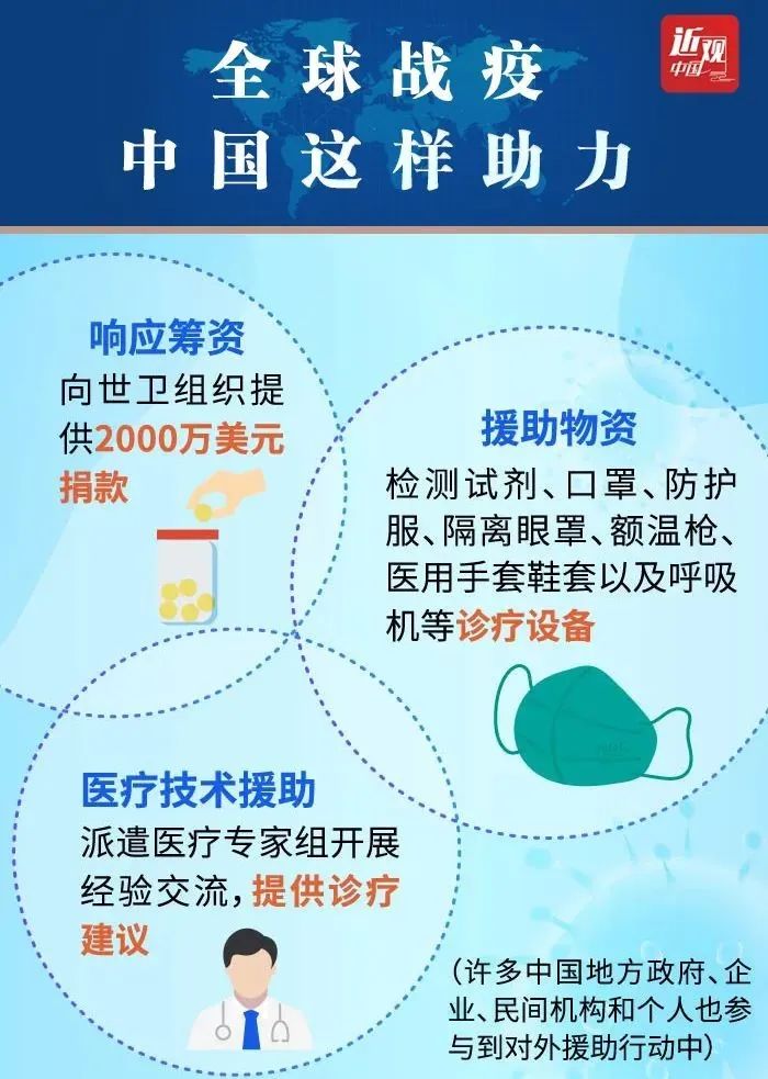 中国外交部3月26日公布的数据显示,中国已向80多个国家,以及世卫组织、非盟等国际和地区组织提供紧急援助,向世卫组织提供2000万美元捐款,支持其开展抗疫国际合作,并向多国派出专家组支援抗疫。