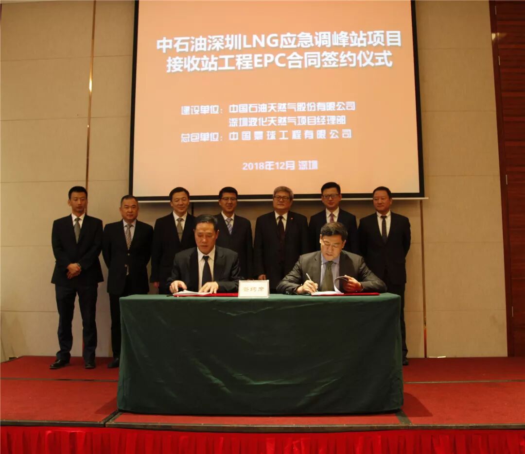 2018年12月底,寰球公司与中国石油天然气股份有限公司深圳液化天然气项目经理部签署了“深圳液化天然气应急调峰站项目接收站工程EPC总承包合同”,合同金额为32.37亿人民币。寰球公司副总经理田霖、深圳液化天然气项目经理部总经理赵玉民,北京寰球公司副总经理黄永刚等双方负责同志出席了签约仪式。